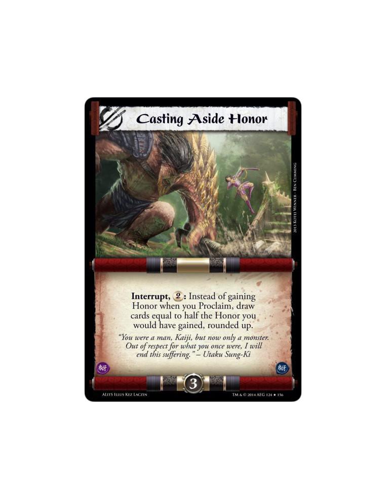 Dragon Clan • Earth • Reserve • Shugenja (You may Recruit a Reserve card, if it would be opposed, as an Absent Battle action.)Enters play for 4 less Gold if you are the Defender.