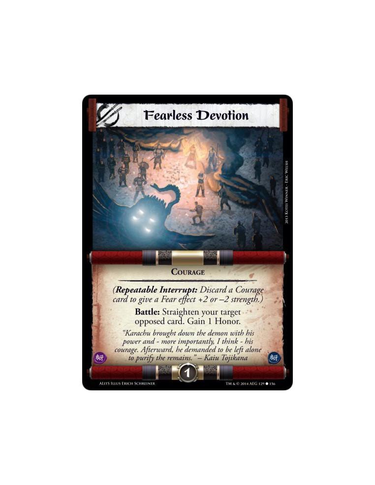 Fearless Devotion  - Courage(Repeatable Interrupt: Discard a Courage card to give a Fear effect +2 or -2 strength.)Battle: Strai