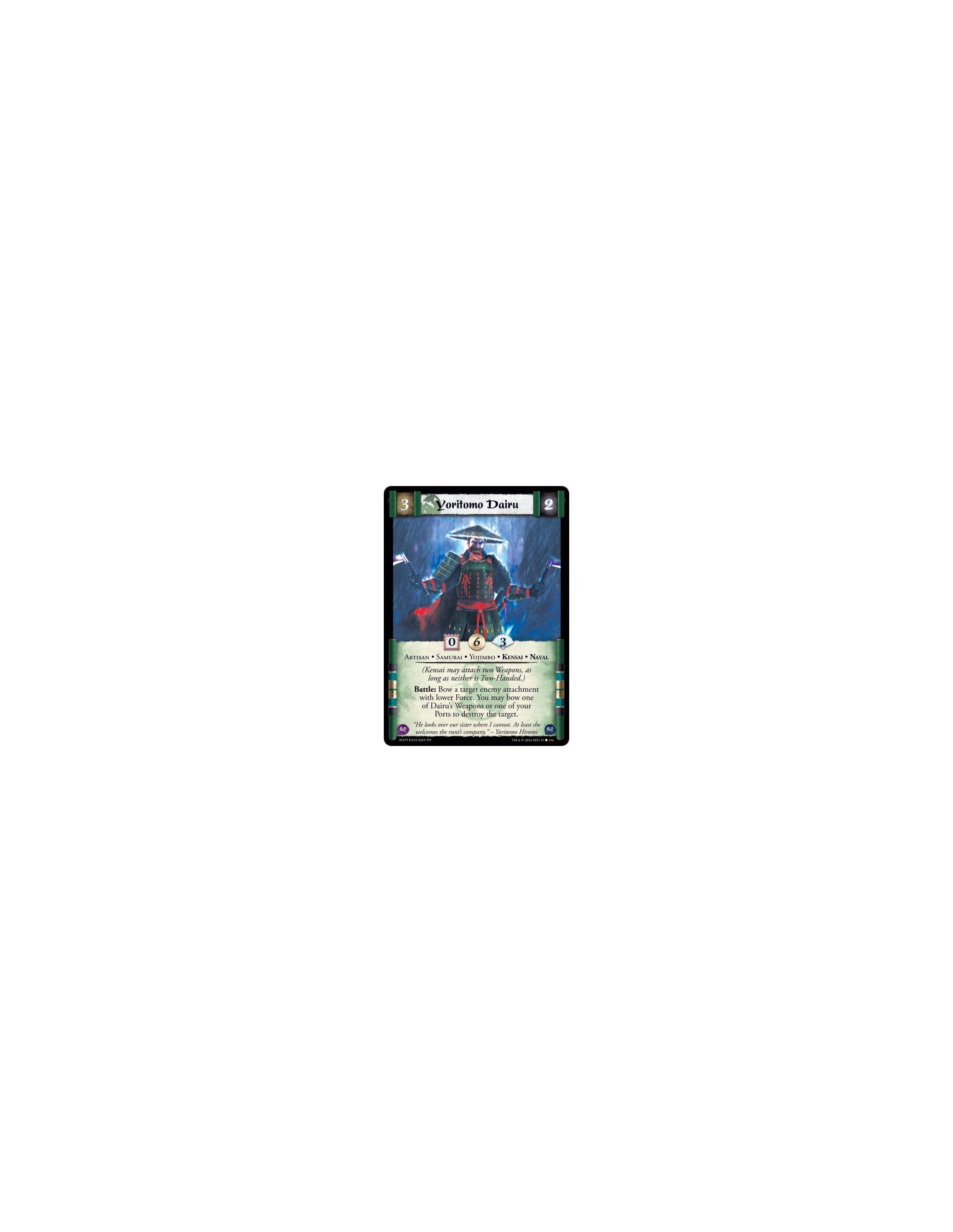 Earth • Fudo • Unique Does not count towards an Enlightenment Victory.After you win a duel against a Personality who shared no keywords with your Personality in the duel, you may put this Ring into play and lose 2 Honor.Other players have -1 maximum hand size.