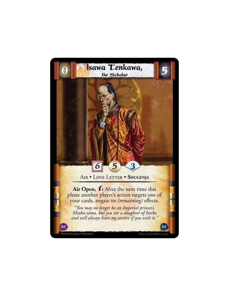 Dragon Clan • Samurai • Naga • Hero • Cavalry • Unique • Experienced Mareshi is Human. Battle: Bow one of your Rings or discard a Ring from your hand: Straighten one of your target units. Move it home or to a battlefield with one or more enemy units.