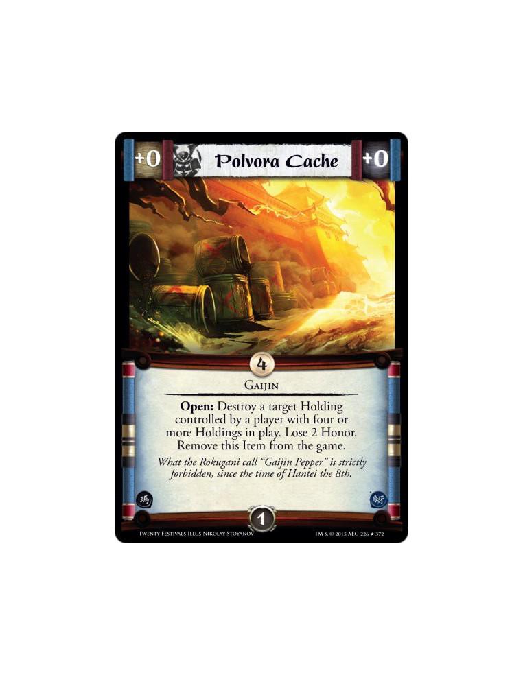 Polvora Cache FOIL  - GaijinOpen: Destroy a target Holding controlled by a player with four or more Holdings in play. Lose 2 Hon