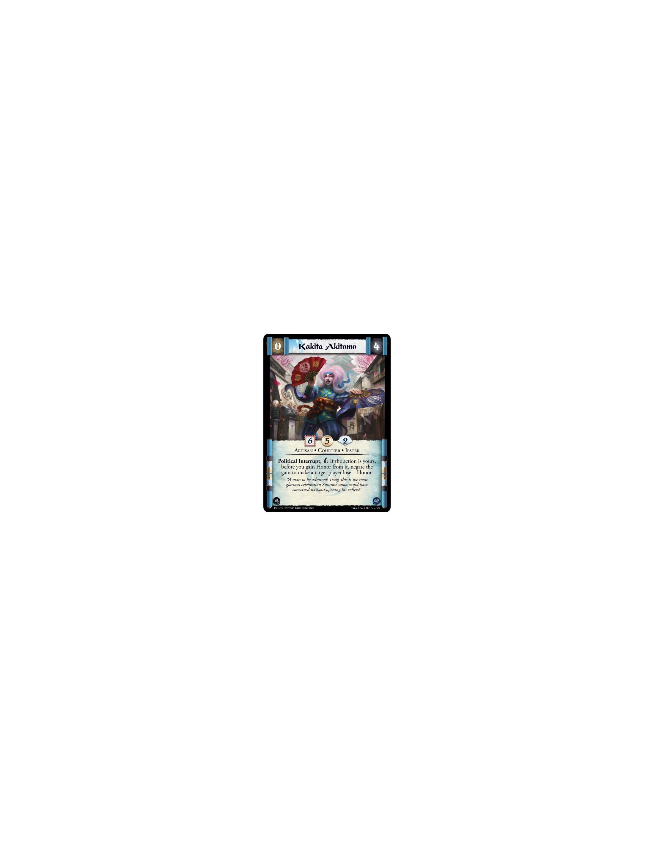 Kakita Akitomo  - Artisan • Courtier • Jester    Political Interrupt, w: If the action is yours, before you gain Honor from it,