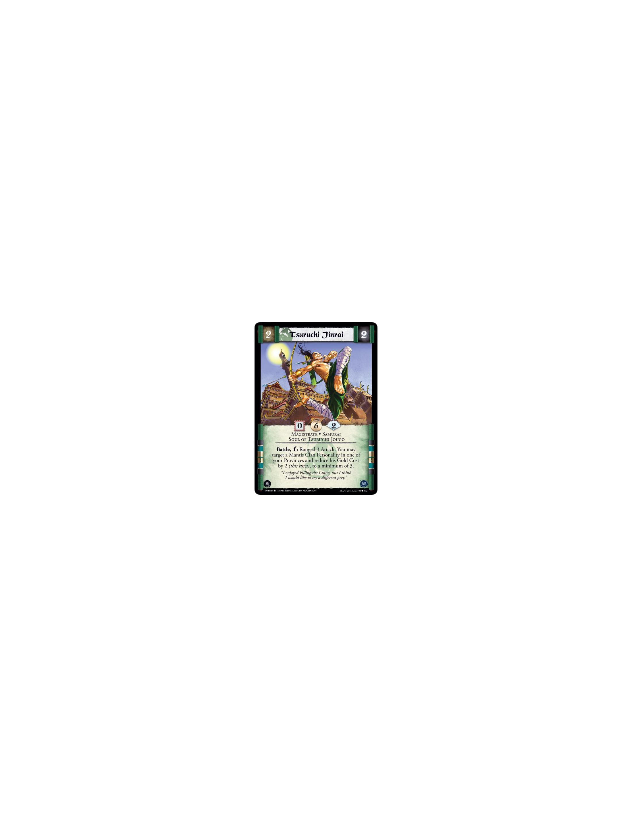 Tsuruchi Jinrai  - Magistrate • Samurai • Soul of Tsuruchi Jougo      Battle, w: Ranged 3 Attack. You may target a Mantis Clan P