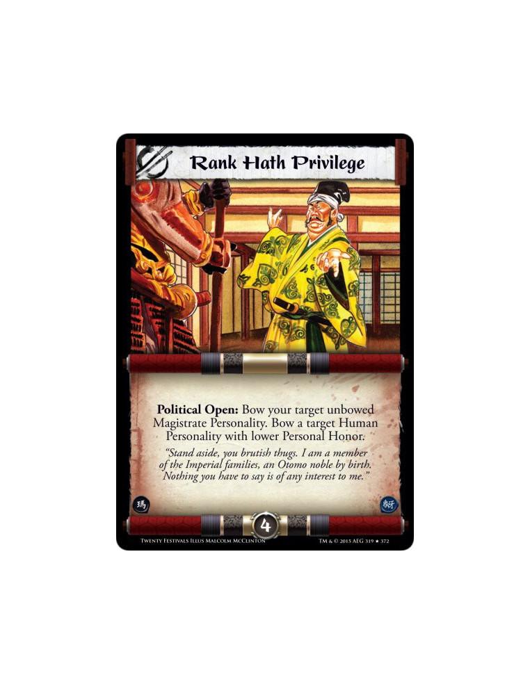 Unique Retainer Reaction Elemental: Bow this card and pay 1 Gold before a duel begins. Draw a card from your Fate Deck and use this card as an additional Focus. This ability may not be used on Personalities who cannot focus.