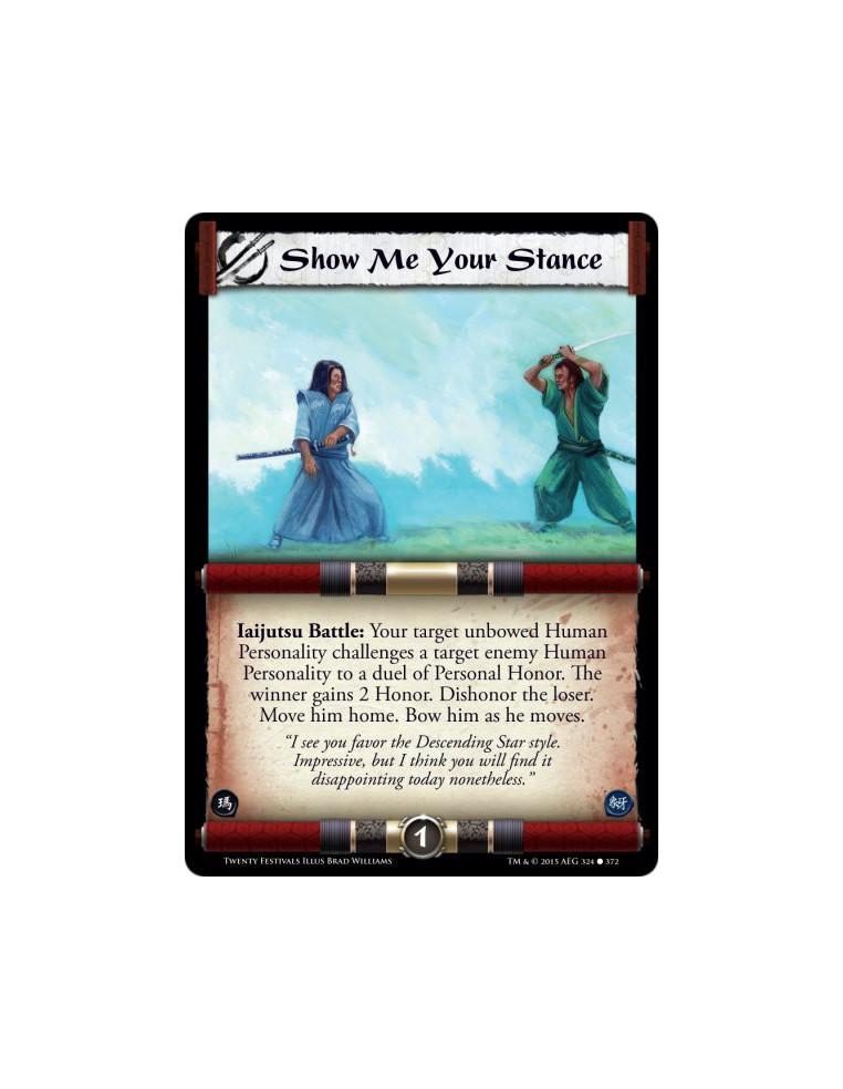 Crab Clan Samurai. Battle: Target and bow a Follower attached to Renga: The enemy leader targets an unbowed Follower, or unbowed Personality, opposing Renga. Bow it.