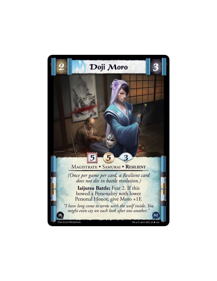 Unicorn Clan Cavalry Samurai Battle: Bow for Range 3 Attack. (Target a Follower, or Personality without Followers, in the opposing army with 3 or less Force. Destroy the Follower or Personality.)