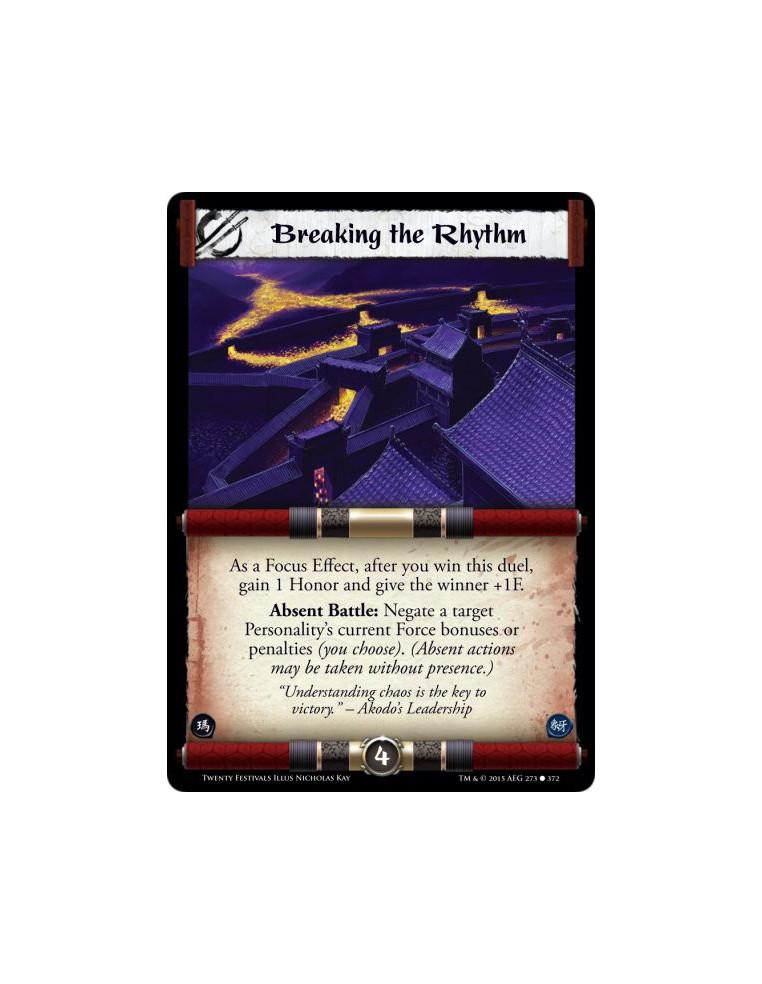 Breaking the Rhythm FOIL  - As a Focus Effect, after you win this duel, gain 1 Honor and give the winner +1F.Absent Battle: Nega