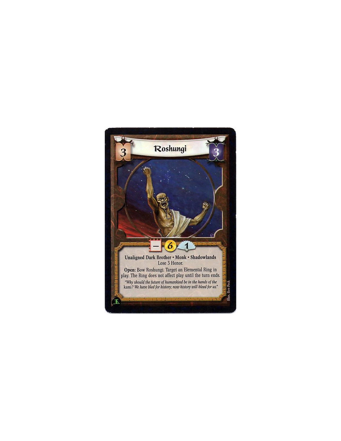 Shadowlands • UniqueLimited: If this card is in your hand, target your dead Personality who was in play during your last turn: Bring him into play, ignoring costs and restrictions, and permanently give him Shadowlands • Undead. Attach this card to him (you must pay its cost). Lose 3 Honor.