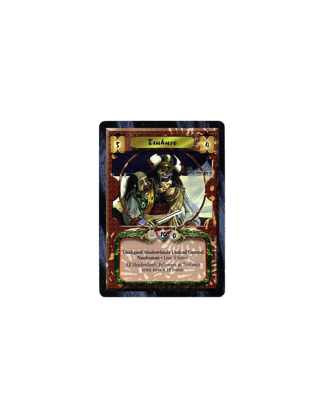 Unaligned Shadowlands Undead General. Nonhuman Lose 5 Honor. All Shadowlands Followers in Tsukuro's army have a 1F bonus.