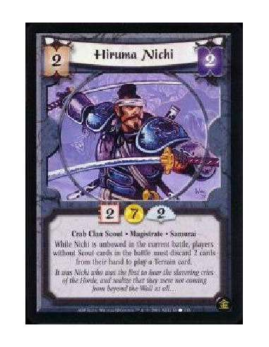 Hiruma Nichi  - Crab Clan Scout * Magistrate * Samurai While Nichi is unbowed in the current battle, players without Scout cards