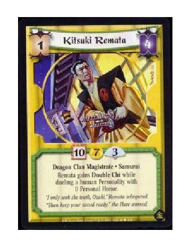 Kitsuki Remata  - Dragon Clan Magistrate * Samurai Remata gains Double Chi while dueling a human Personality with 0 Personal Hon