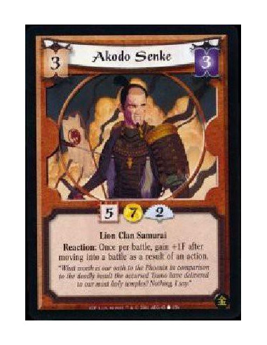 Akodo Senke  - Lion Clan Samurai Reaction: Once per battle, gain +1F after moving into a battle as a result of an action.