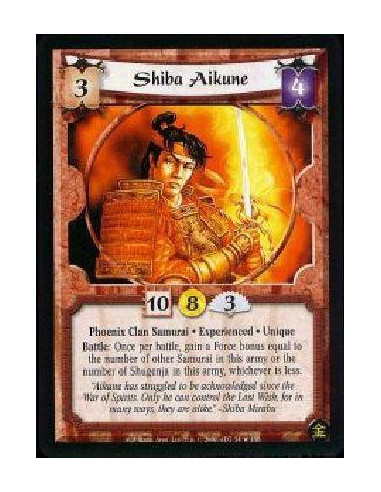Shiba Aikune Exp  - Phoenix Clan Samurai * Experienced * Unique Battle: Once per battle, gain a Force bonus equal to the number