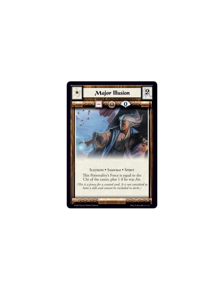 Focus Effect: Gain 2 Honor and draw a card. Battle: Target one of your Personalities and a Personality opposing him: Give your Personalty a force Bonus equal to his or the other target's Personal Honor, wichever is greater. Give the other target a Force penaltyof the same amount.