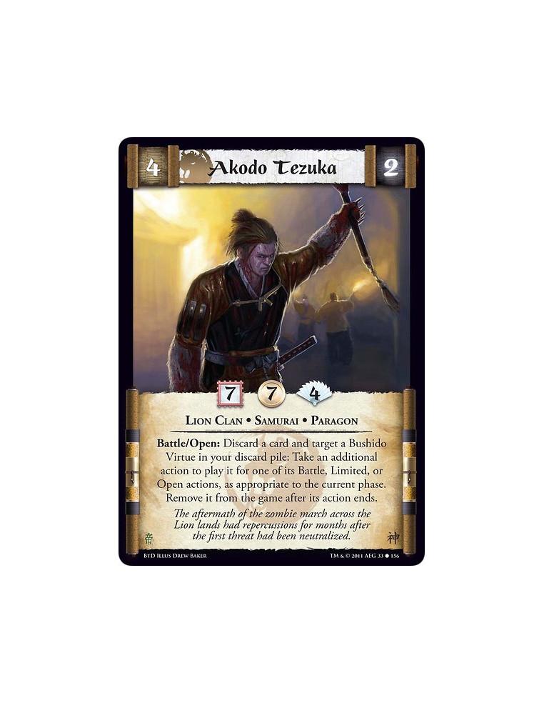 Akodo Tezuka (Español)  - Lion Clan • Samurai • ParagonBattle/Open: Discard a card and target a Bushido Virtue in your discard p