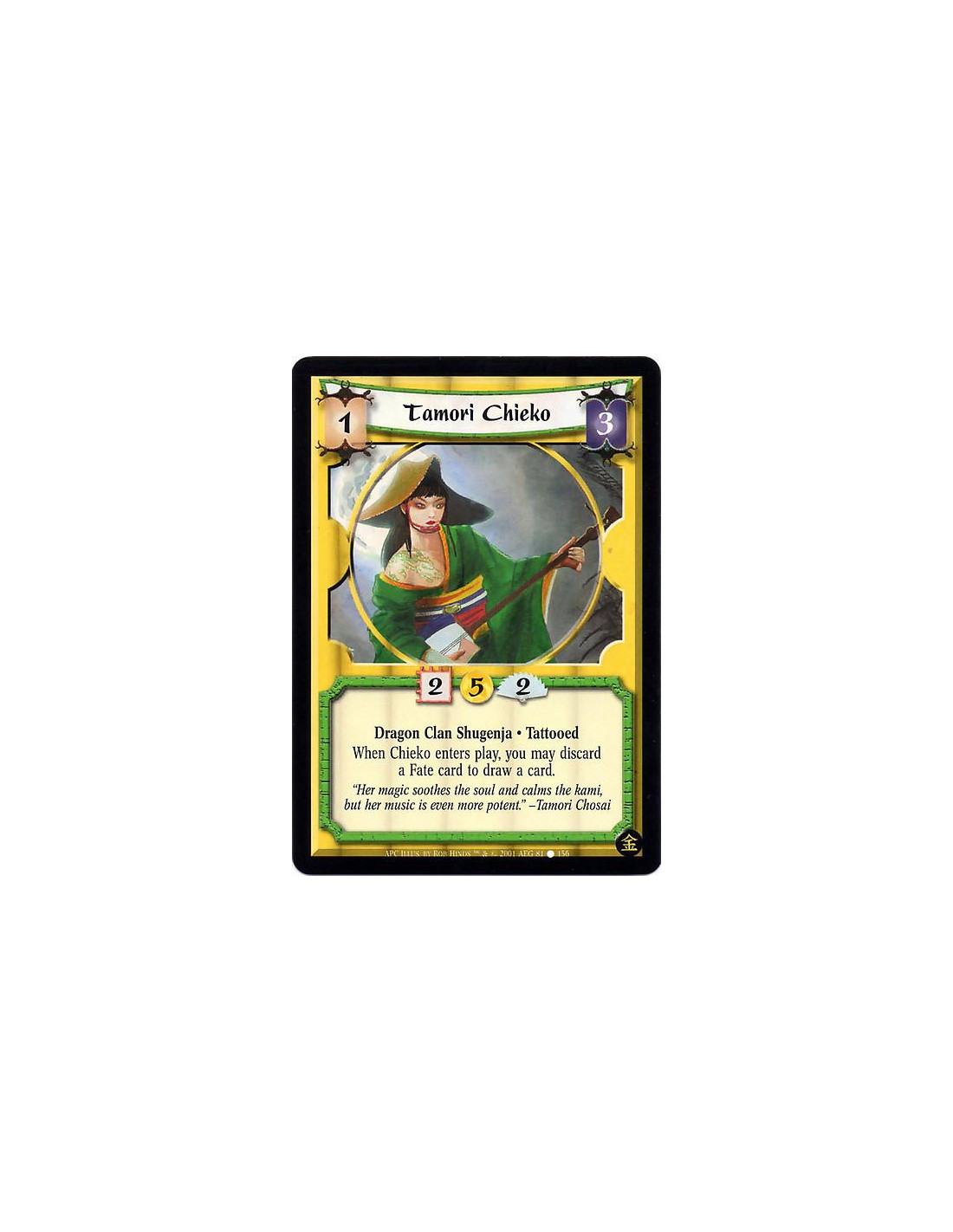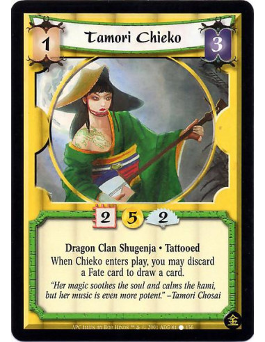 Tamori Chieko  - Dragon Clan Shugenja. Tattooed When Chieko enters play, you may discard a Fate card to draw a card.