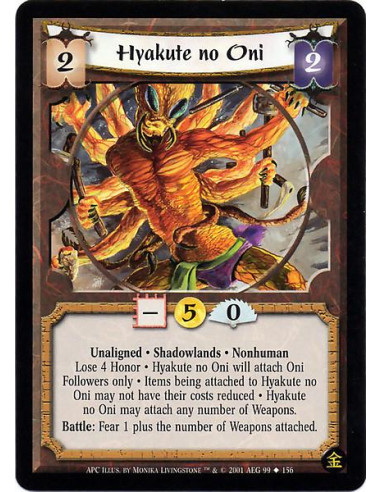 Shadowlands · Oni · Nonhuman · Lose 6 Honor. Wareta no Oni has a Force penalty equal to the number of cards in your hand