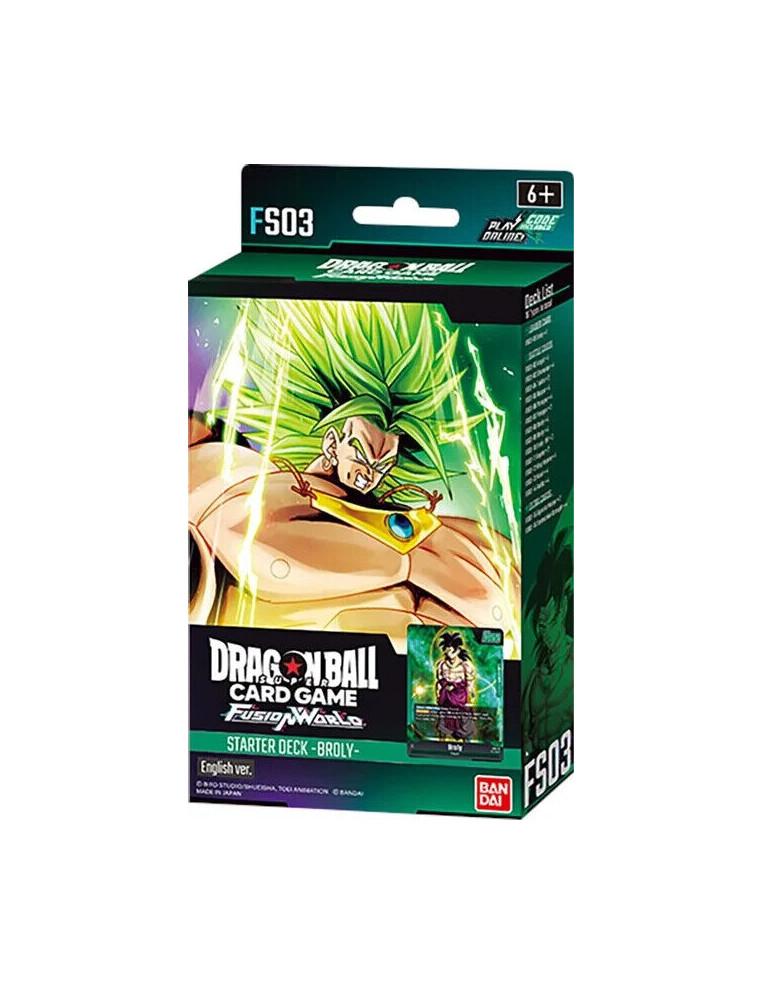 Fusion World Starter Deck Broly FS03  - Ready-to-play 51 card deck X 1Energy marker X 1Playsheet X 1Alternative-Design Card Pack