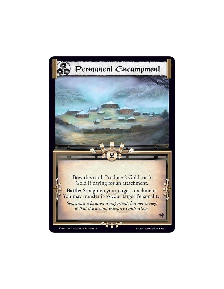 Permanent Encampment (Español)  - Bow this card: Produce 2 Gold, or 3 Gold if paying for an attachment. Battle: Straighten your