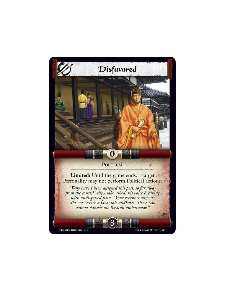 Disfavored (Español)  - Political Limited: Until the game ends, a target Personality may not perform Political actions.