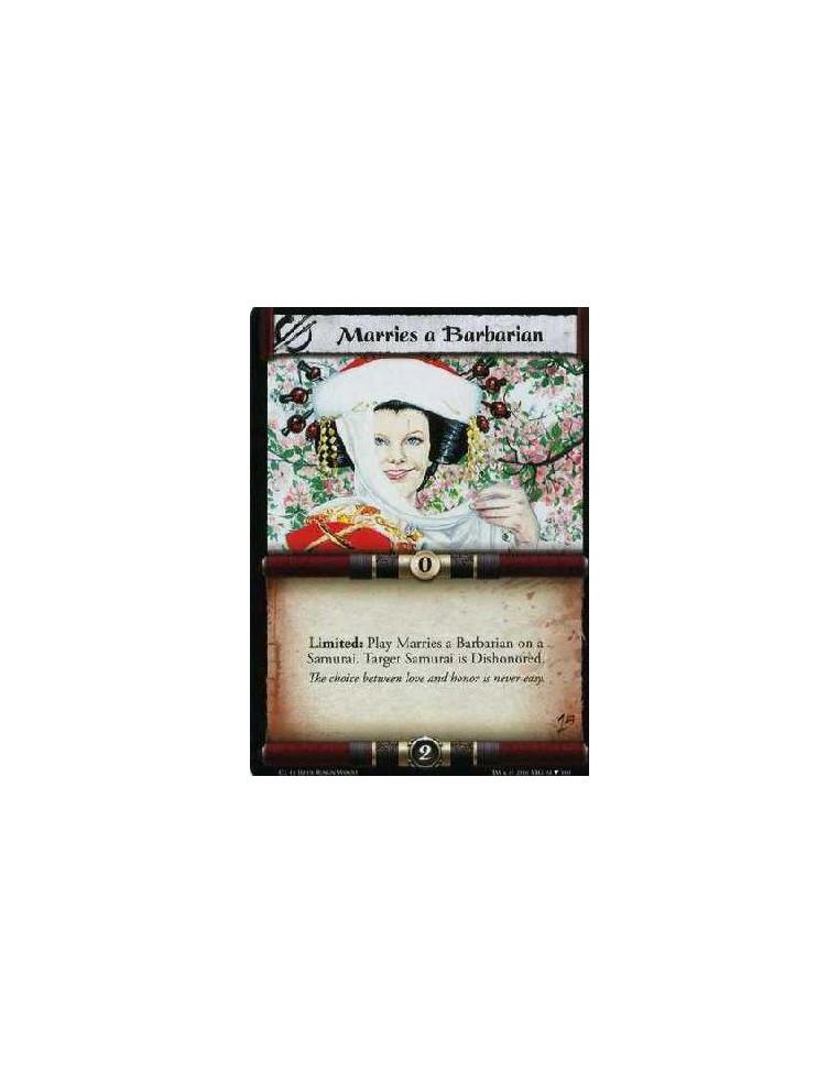 Marries a Barbarian (Español)  - Limited: Play Marries a Barbarian on a Samurai. Target Samurai is Dishonored.