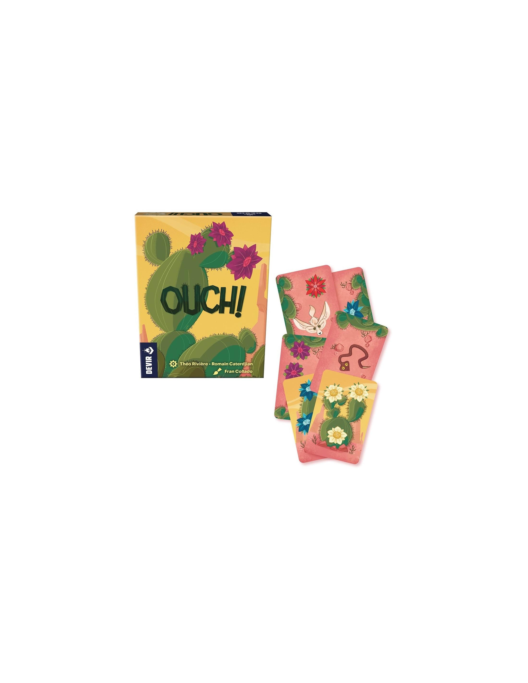 Los cactus del desierto esconden flores de gran belleza... ¡Pero cuidado con los pinchos! Para ganar en Ouch! deberéis coleccionar las flores más hermosas del desierto, evitando tocar los afilados pinchos del cactus. Contaréis con la ayuda de víboras y fenecs, mientras alternáis turnos para juntar el ramo más vistoso. Ouch! es un divertido juego de cartas al que puedes jugar con los más pequeños de casa o entre amigos. ¡Vigila donde pones los dedos!