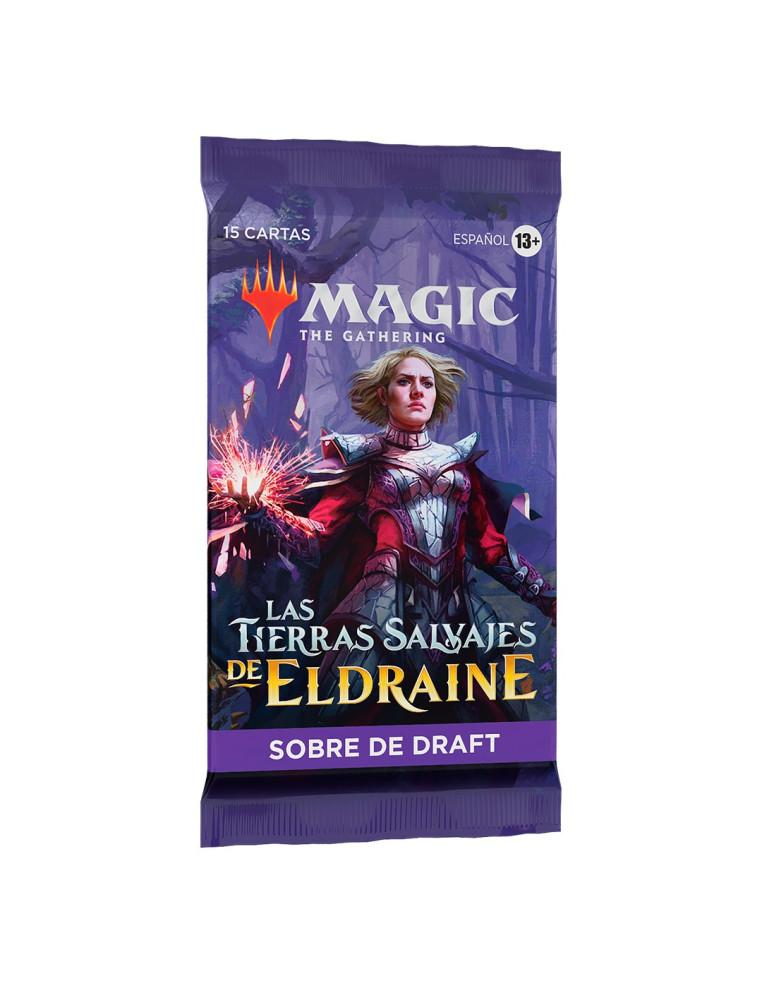 ¡Tu próxima aventura te aguarda! Esta caja de sobres de Draft de Las tierras salvajes de Eldraine incluye 36 sobres de Draft de Las tierras salvajes de Eldraine. Cada sobre de Draft contiene 15 cartas y 1 ficha o carta publicitaria, con 1 o 2 cartas raras o de una rareza superior, 3 o 4 poco comunes, 9 comunes y 1 carta de tierra (tierra con arte completo en el 33 % de los sobres). Cada sobre incluye al menos 1 carta sin borde especial poco común o de una rareza superior y una carta foil tradicional de cualquier rareza sustituye a una carta común en el 33 % de los sobres.