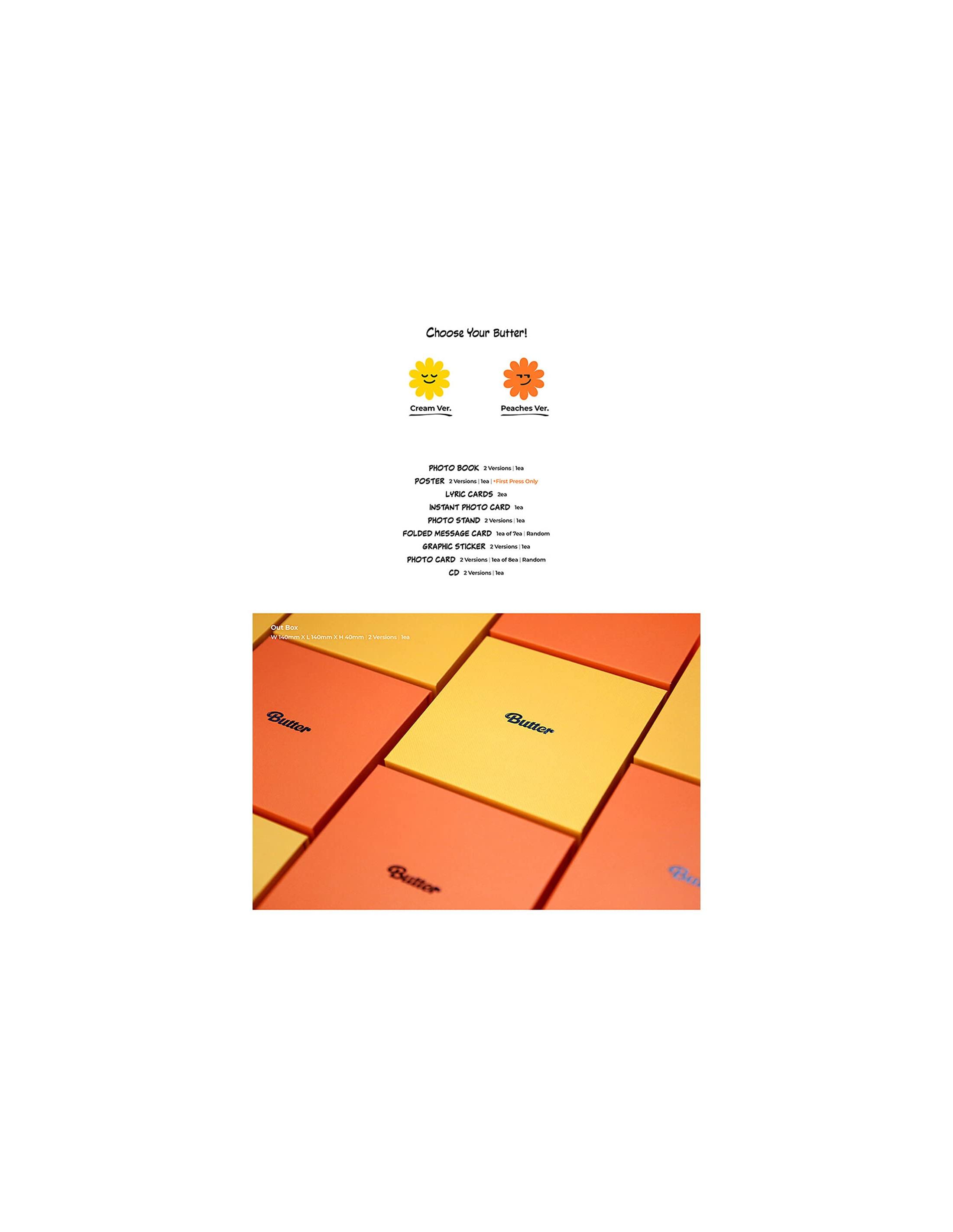 BTS - Single (BUTTER)  - BTS - Single [BUTTER]2 Versiones:  Cream (amarilla), Peaches (naranja)Este single de BTS contiene:- CD-