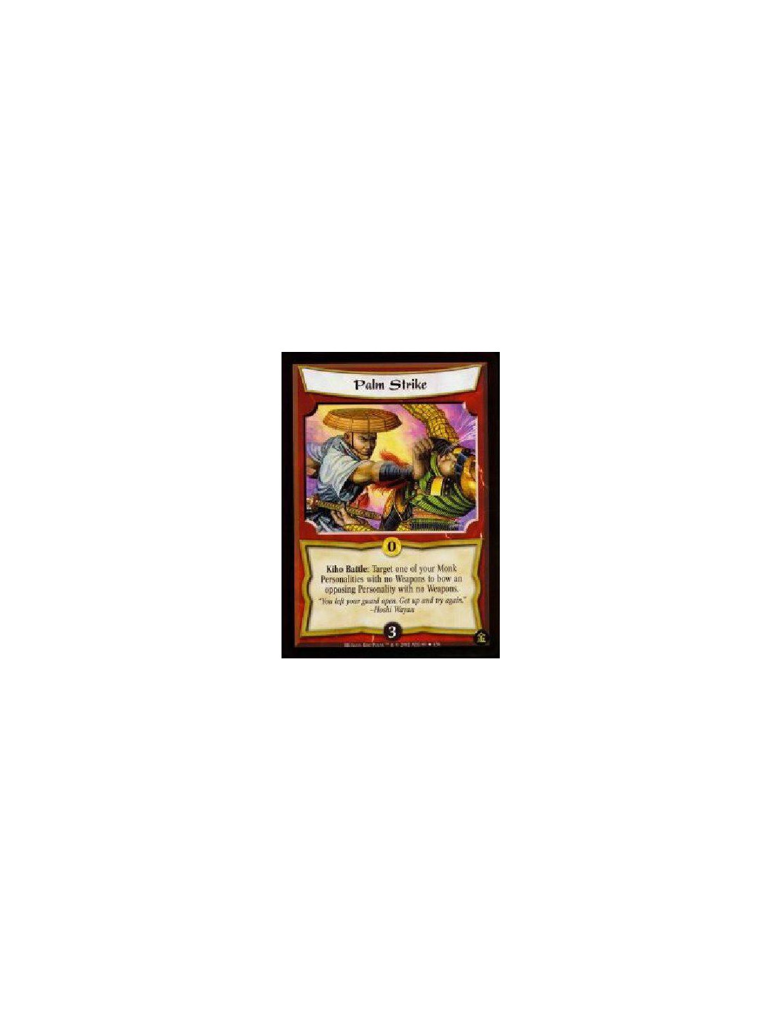 Palm Strike  - Kiho Battle: Target one of your unbowed Monk Personalities with no Weapons to bow an opposing Personality with no