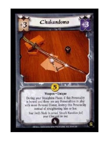 Chukandomo  - Weapon. Unique During your Straighten Phase, if this Personality is bowed and there are any Personalities in play
