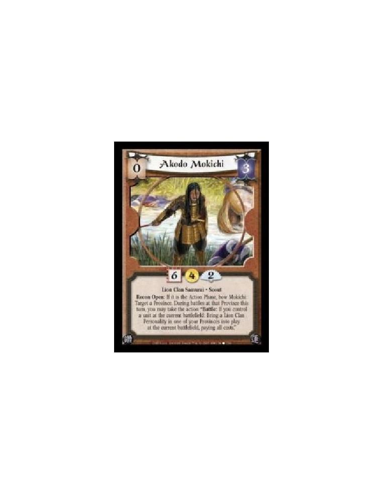 Akodo Mokichi (Español)  - Lion Clan Samurai · Scout. Recon Open: If it is the Action Phase, bow Mokichi: Target a Province. Dur