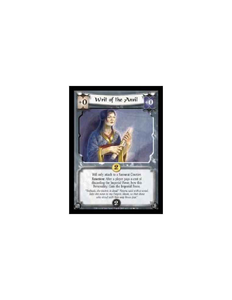 Writ of the Anvil (Español)  - Will only attach to a Samurai Courtier. Reaction: After a player pays a cost of discarding the Im