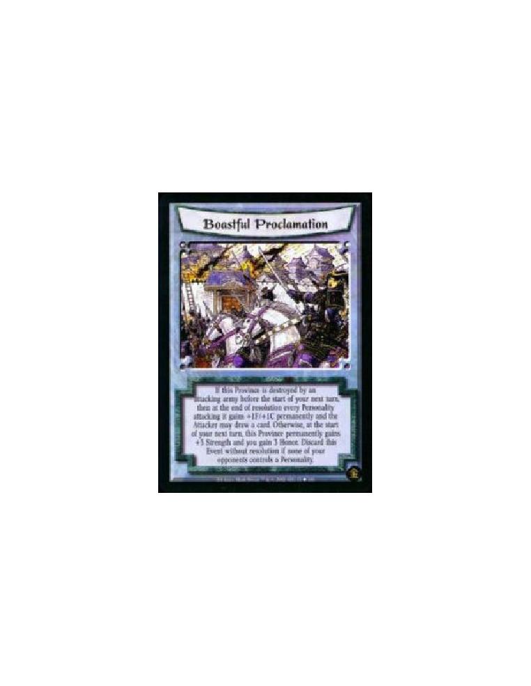 If this Province is destroyed by an attacking army before the start of your next turn, then at the end of resolution, every Personality attacking it gains +1F/+1C permanently and the Attacker may draw a card. Otherwise, at the start of your next turn, this Province permanently gains +3 Strength and you gain 3 Honor. Discard this Event without resolution if none of the other players controls a Personality.