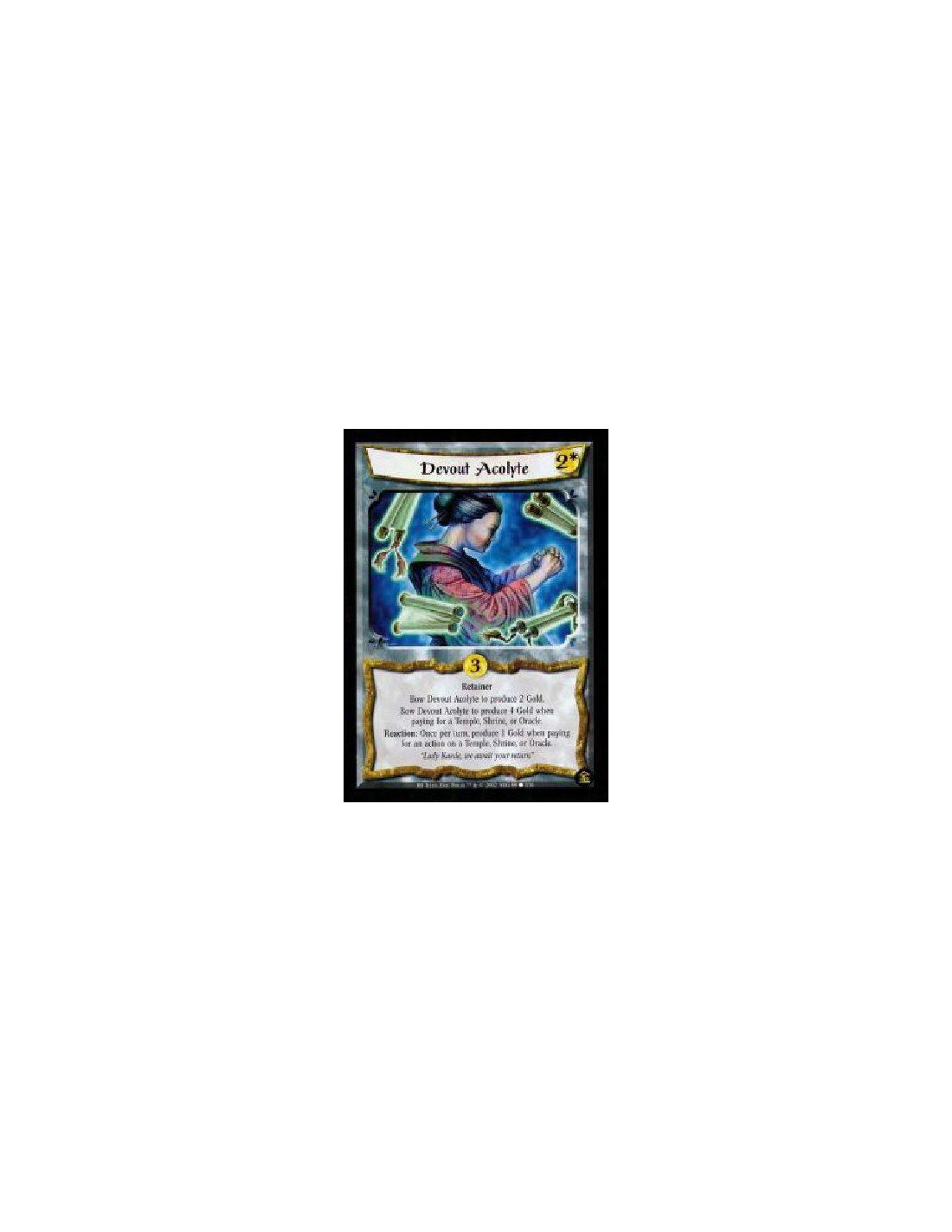 Retainer Bow Devout Acolyte to produce 2 Gold. Bow Devout Acolyte to produce 4 Gold when paying for a Temple, Shrine, or Oracle. Reaction: Once per turn, produce 1 Gold when paying for an action on a Temple, Shrine, or Oracle.