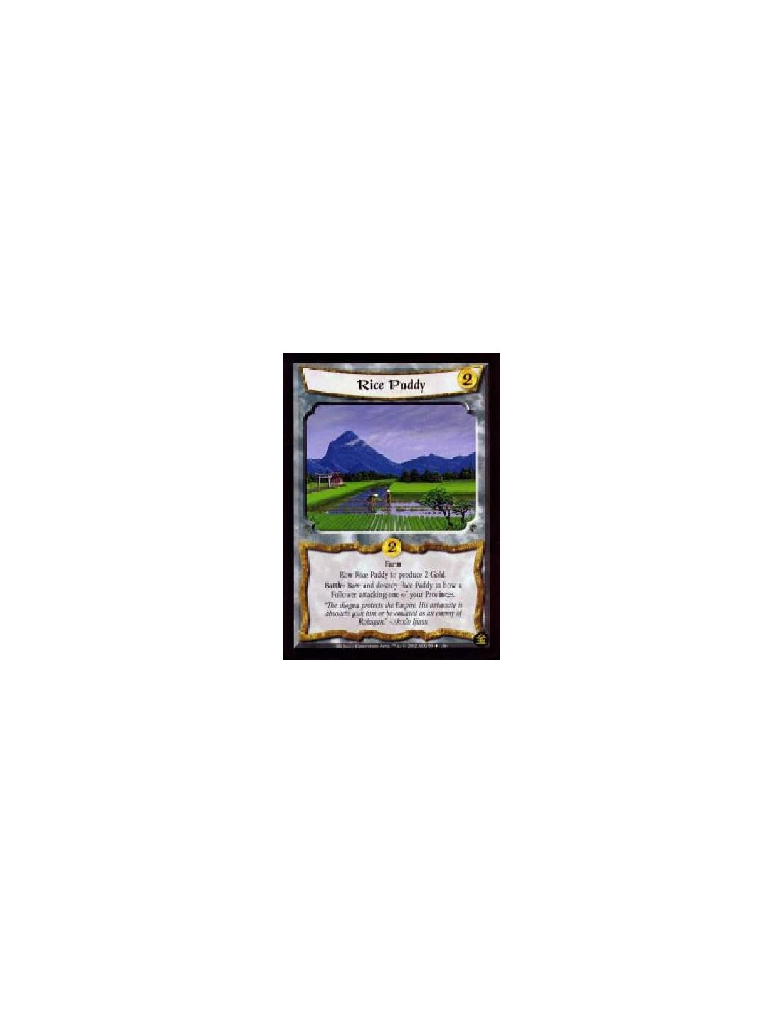Farm Bow Rice Paddy to produce 2 Gold. Battle: Bow and destroy Rice Paddy to bow a Follower attacking one of your Provinces.
