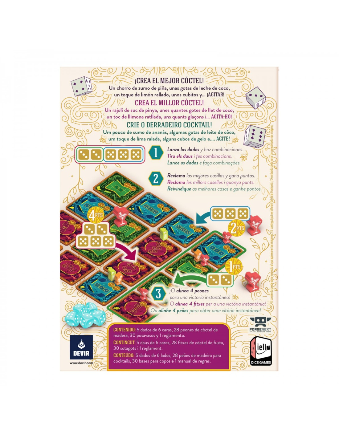 Presta atención y observa tus cartas, ¿has visualizado el objetivo que marca cada una? Ahora es el momento de colocar los dados que puedas sabiamente para conseguir todos los objetivos que puedas.