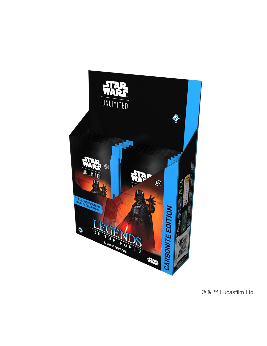 Estos sobres premium especiales están repletos de cartas con tratamientos estéticos únicos, lo que los convierte en el producto perfecto para coleccionistas. En este sobre Carbonite del quinto set del juego, Leyendas de la Fuerza, encontrarás 16 cartas para ampliar tu colección, que incluyen aproximadamente: 1 carta de líder en versión Hiperespacio/Showcase, 6 cartas foil premium, 1 carta foil rara o legendaria, 1 carta de Prestigio exclusiva del sobre Carbonita, 4 cartas Hiperespacio, 1 carta Hiperespacio rara o legendaria y 2 cartas foil Hiperespacio.