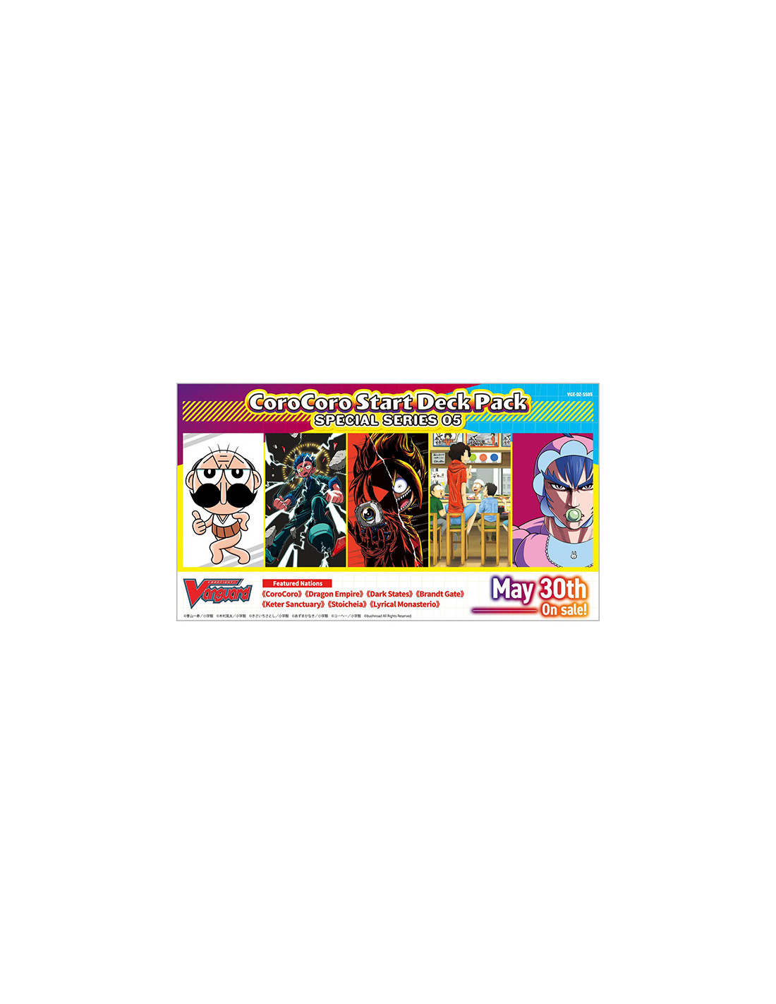 Popular characters from CoroCoro Comic such as "Dangerous Grandpa", "Fate Rewinder", "Black Channel", "Oversized Dekka-kun", and "Bebebebe Baby" are joining Vanguard!