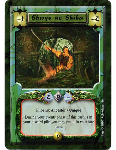 Shiryo no Shiba  - Phoenix Ancestor. Unique During your events phase, if this card is in your discard pile, you may put it in yo