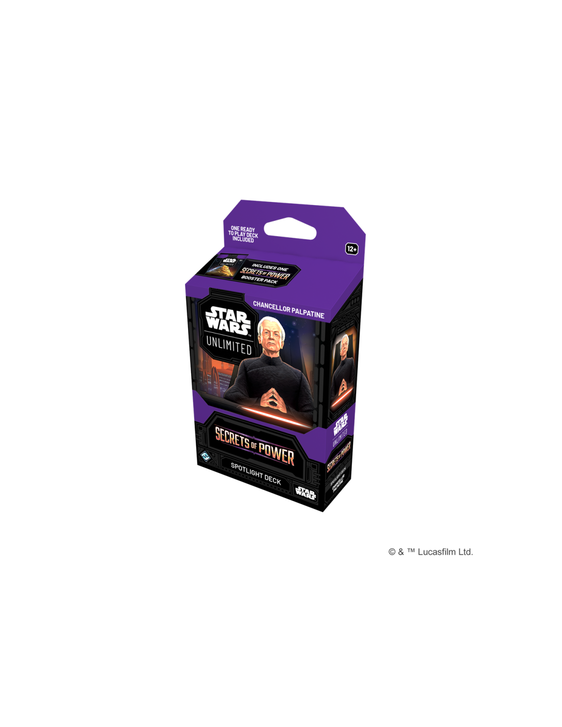 ¡Conspira en la sombra y planea tu victoria definitiva con el Canciller Palpatine en este Mazo de muestra! Dentro de esta caja encontrarás una carta de líder del Canciller Palpatine y un mazo de 50 cartas listo para empezar a jugar sacando el máximo partido de sus puntos fuertes. El mazo contiene cartas de múltiples colecciones, incluidos conjuntos enteros de 4 cartas de rareza especial, así como indicadores de daño, fichas y un sobre de ampliación de Secretos del poder con el que podrás aumentar tu colección.