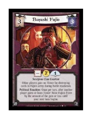 Earth • ForestWhile this Shugenja is Earth, your Spirits contribute Force to their army even while bowed. Battle: Even if this unit is not at the current battlefield, bow your performing Spirit and target an enemy card: Bow it.