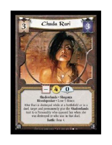 Chuda Ruri  - Shadowlands · Shugenja · Bloodspeaker · Lose 5 Honor. After Ruri is destroyed while at a battlefield or in a duel,