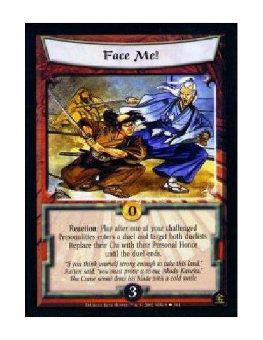 Face Me!  - Reaction: Play after one of your challenged Personalities enters a duel and target both duelists. Replace their Chi