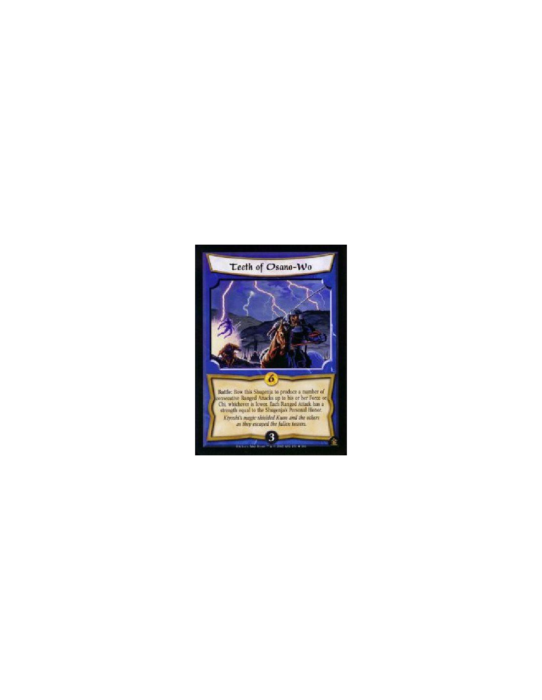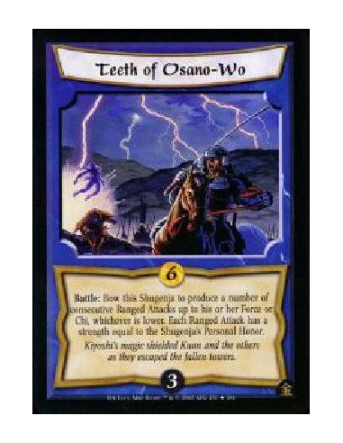 Teeth of Osano-Wo  - Battle: Bow this Shugenja to produce a number of consecutive Ranged Attacks up to his or her Force or Chi,
