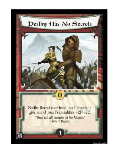 Reaction: After one of your Personalities is destroyed during battle: Give all Personalities in your army +1F, or +2F if you are Lion Clan Player