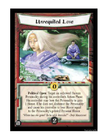 Unrequited Love  - Political Open: Target an unbowed Human Personality during his controller's Action Phase. His controller may
