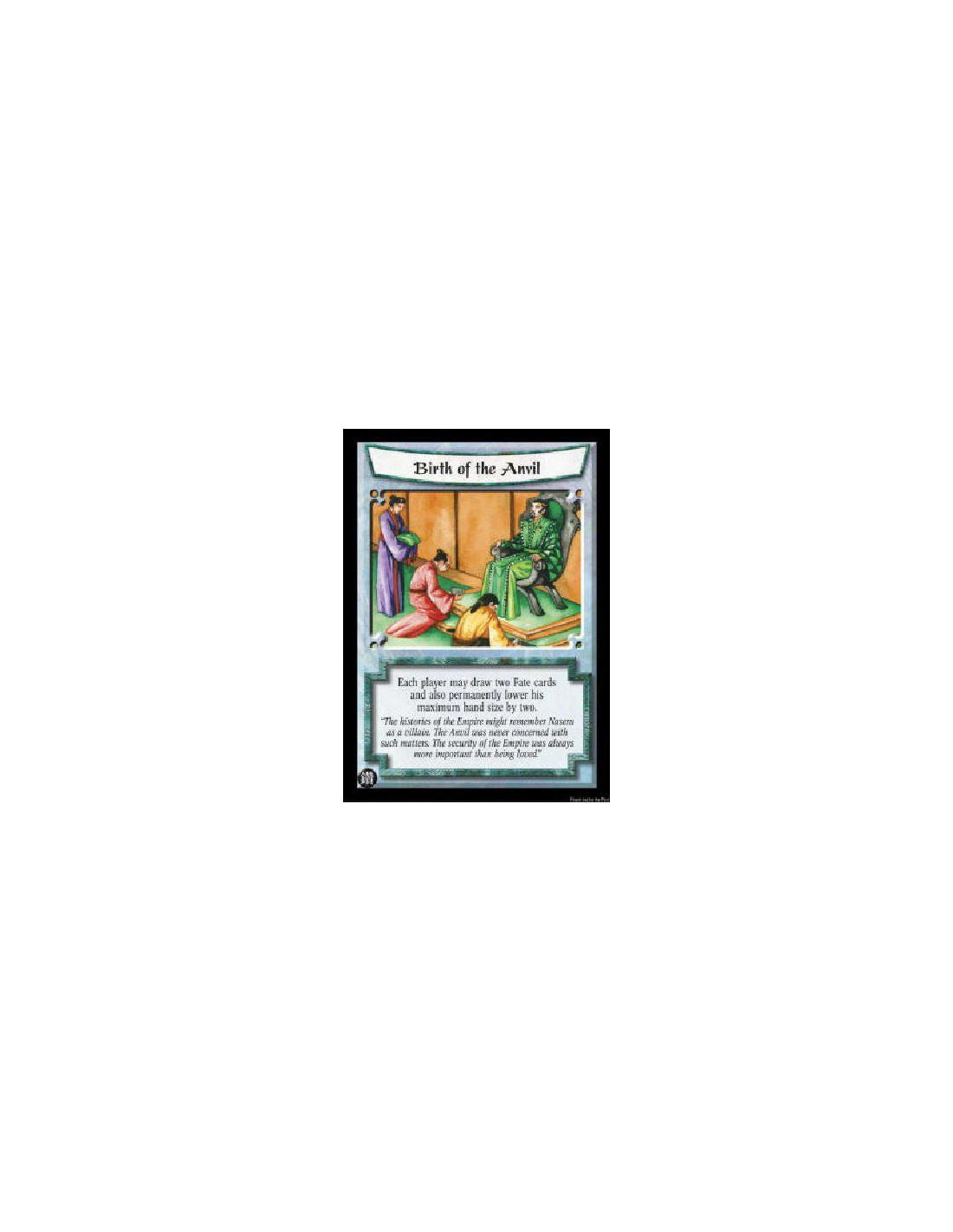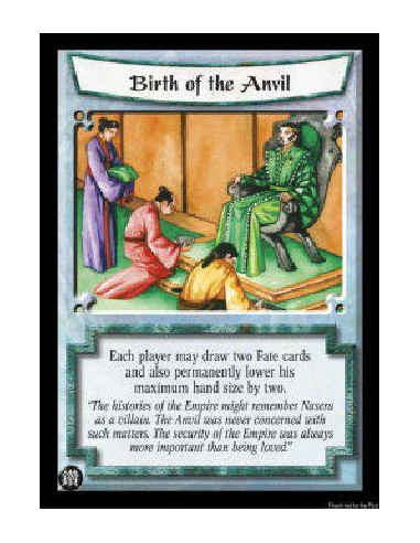 Birth of the Anvil  - Each player may draw two Fate cards and also permanently lower his maximum hand size by two.