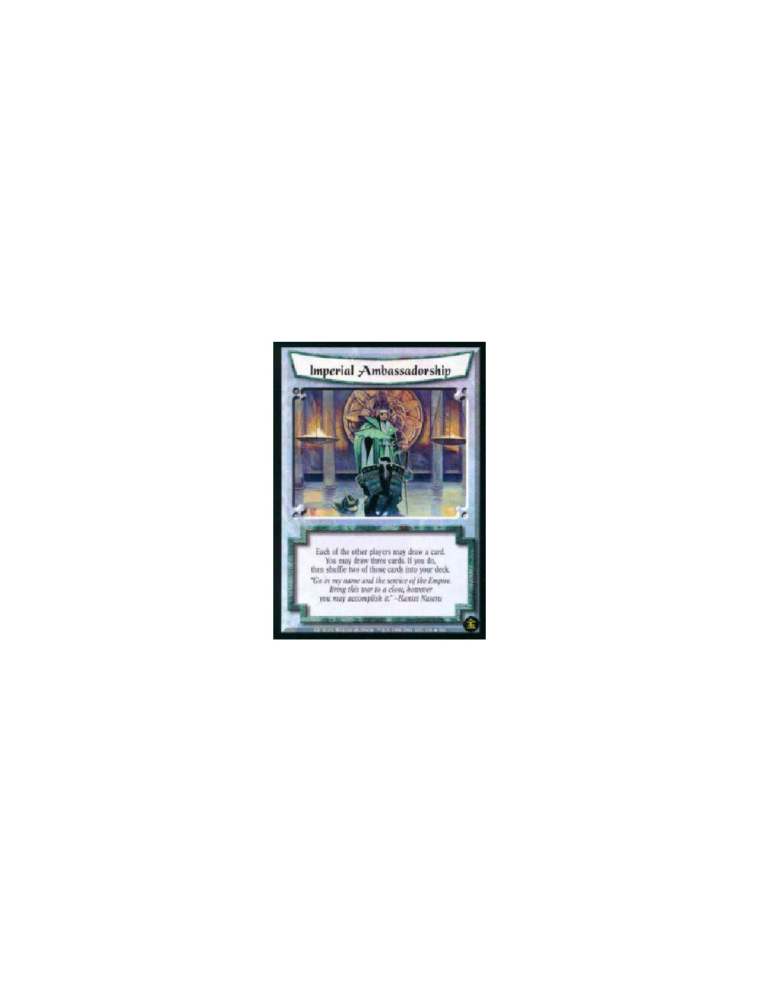 Imperial Ambassadorship  - Each of the other players may draw a card. You may draw three cards. If you do, then shuffle two of t