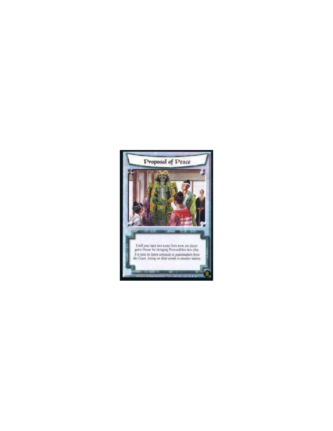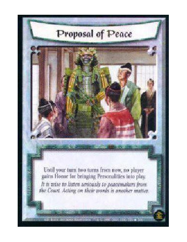 Proposal of Peace  - Until the beginning of your second turn from now, negate all Honor gains for bringing Personalities into pl