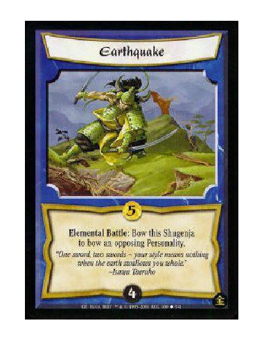 Iaijutsu Battle: Your target unbowed Human Personality challenges a target enemy Human Personality to a duel of Personal Honor. The winner gains 2 Honor. Dishonor the loser. Move him home. Bow him as he moves.